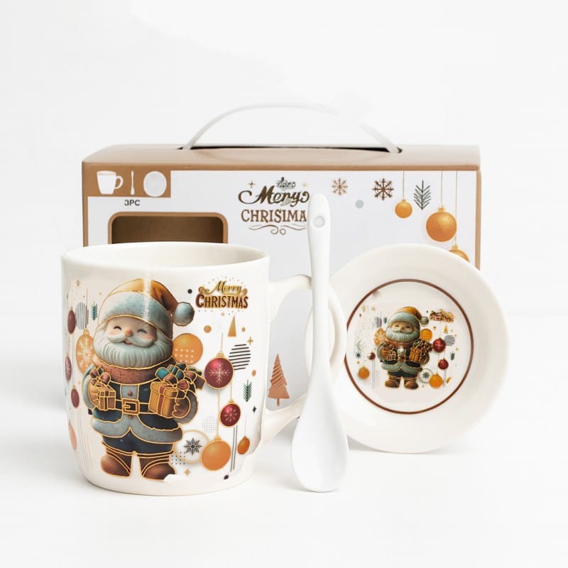 KUBEK CERAMICZNY z motywem świątecznymZestaw z pokrywką i łyżeczką Idealny gadżet dla każdego miłośnika kawy czy herbaty. Specyfikacja:Materiał: ceramika / stal nierdzewnaKolor: biały, złoty, wielokolorowyPojemność: max 350 mlWymiary: 8,5 cm x 9 cmŚrednica pokrywki: 9,5 cmDługość łyżeczki: 13 cm Czyszczenie:Produkt przeznaczony do ręcznego mycia Wymiary opakowania:19,5 cm x 8,5 cm x 12 cm Waga:363 g netto463 g brutto Zestaw zapakowany w ozdobne kartonowe pudełko Poczuj świąteczny klimat!