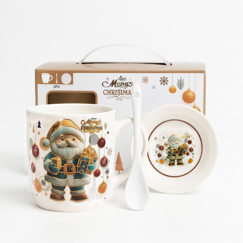 KUBEK CERAMICZNY z motywem świątecznymZestaw z pokrywką i łyżeczką Idealny gadżet dla każdego miłośnika kawy czy herbaty. Specyfikacja:Materiał: ceramika / stal nierdzewnaKolor: biały, złoty, wielokolorowyPojemność: max 350 mlWymiary: 8,5 cm x 9 cmŚrednica pokrywki: 9,5 cmDługość łyżeczki: 13 cm Czyszczenie:Produkt przeznaczony do ręcznego mycia Wymiary opakowania:19,5 cm x 8,5 cm x 12 cm Waga:363 g netto463 g brutto Zestaw zapakowany w ozdobne kartonowe pudełko Poczuj świąteczny klimat!