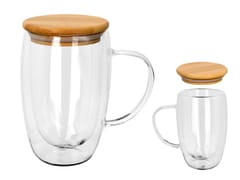 Kubek szklan z podwójnymi ściankami i przykrywką