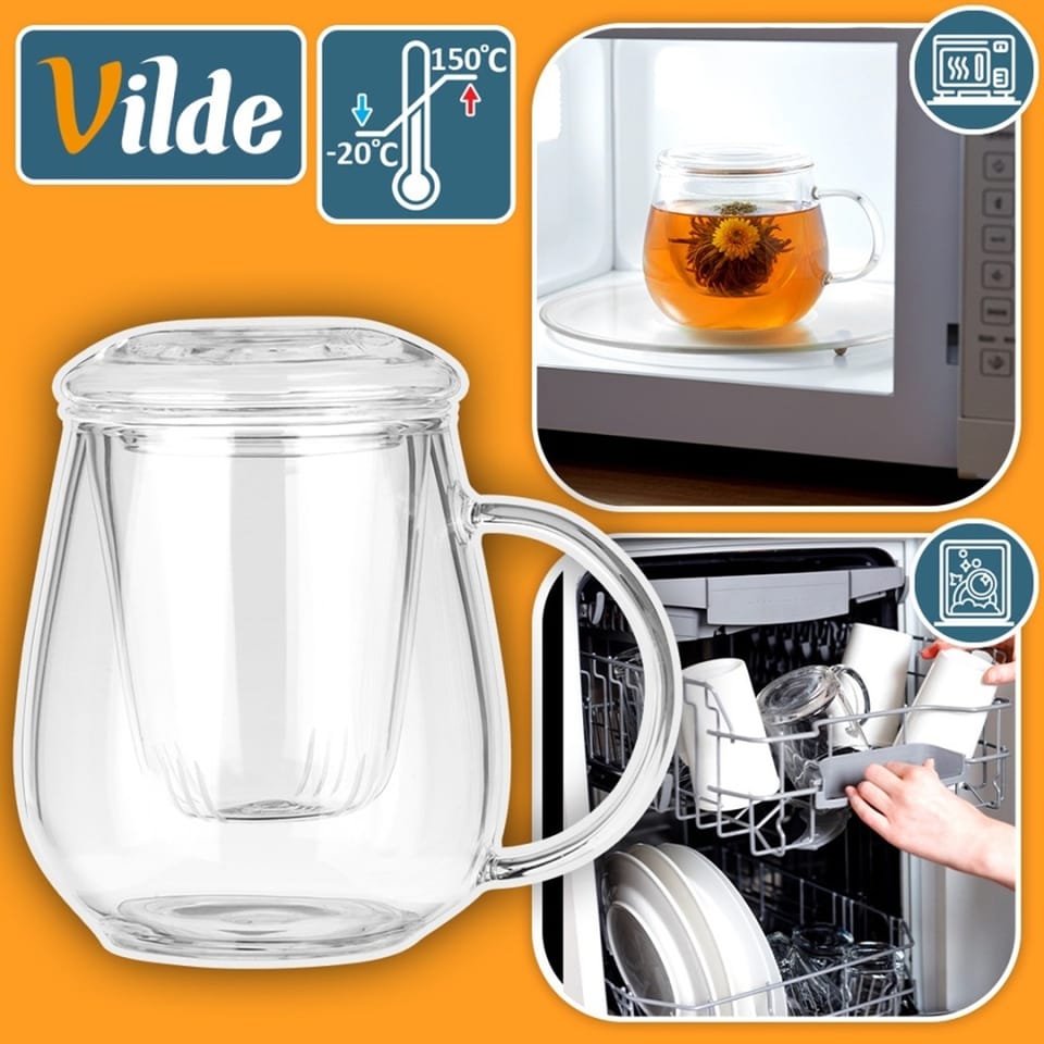 Efektowny kubek z zaparzaczem i pokrywką. Serwowane w nim napoje prezentują się bardzo efektownie, więc świetnie sprawdzi się również w lokalach gastronomicznych do serwowania w oryginalny sposób herbaty. Klasyczny kształt i oryginalne rozwiązanie z zaparzaczem sprawi, że efektownie prezentuje się na stole. Oryginalny produkt marki Vilde. Wyprodukowano zgodnie z europejskimi standardami.
