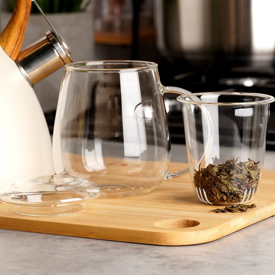 - Wyjmowany szklany zaparzacz - Posiada praktyczny zaparzacz z drobnymi otworami, który skutecznie zatrzymuje liście herbaty i zioła. Po zaparzeniu można go łatwo wyjąć, a napój pozostaje klarowny.
