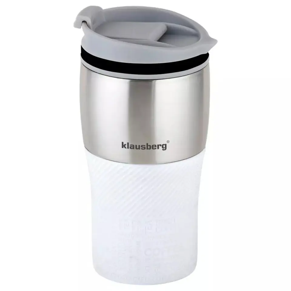 Kubek - termos nowej generacji o pojemności 320 ml firmy KLAUSBERG wykonany ze stali nierdzewnej z izolacją próżniową DOUBLE WALL. Z dolnej części kubek wykończony opaską silikonową zapewniającą pewny chwyt. Zamknięcie skonstruowane tak aby można było łatwo otworzyć jedną ręką. Podstawa antypoślizgowa. Kubek termiczny Klausberg prezentuje się jako esencja nowoczesnego designu i funkcjonalności. Kolor biały.