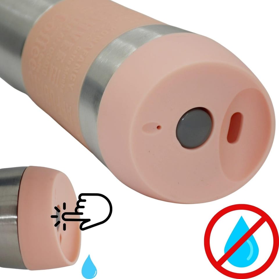 Butelka ma szczelną nakrętkę z silikonową uszczelką i otwieraną klapkę zamykającą kubek po każdym łyku, dziki czemu szybko i łatwo napijesz się ulubionego napoju.