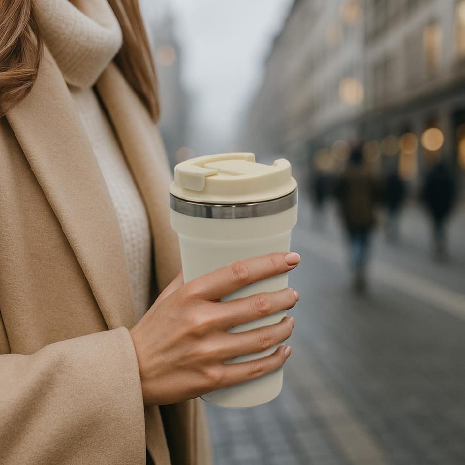 Poranna kawa w biurze, herbata na spacerze, lemoniada w podróży, KUBEK TERMICZNY TURYSTYCZNY EXCELLENT HOUSEWARE 500ML - ECRU to jeden kubek, ale wiele możliwości.
