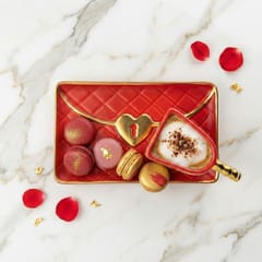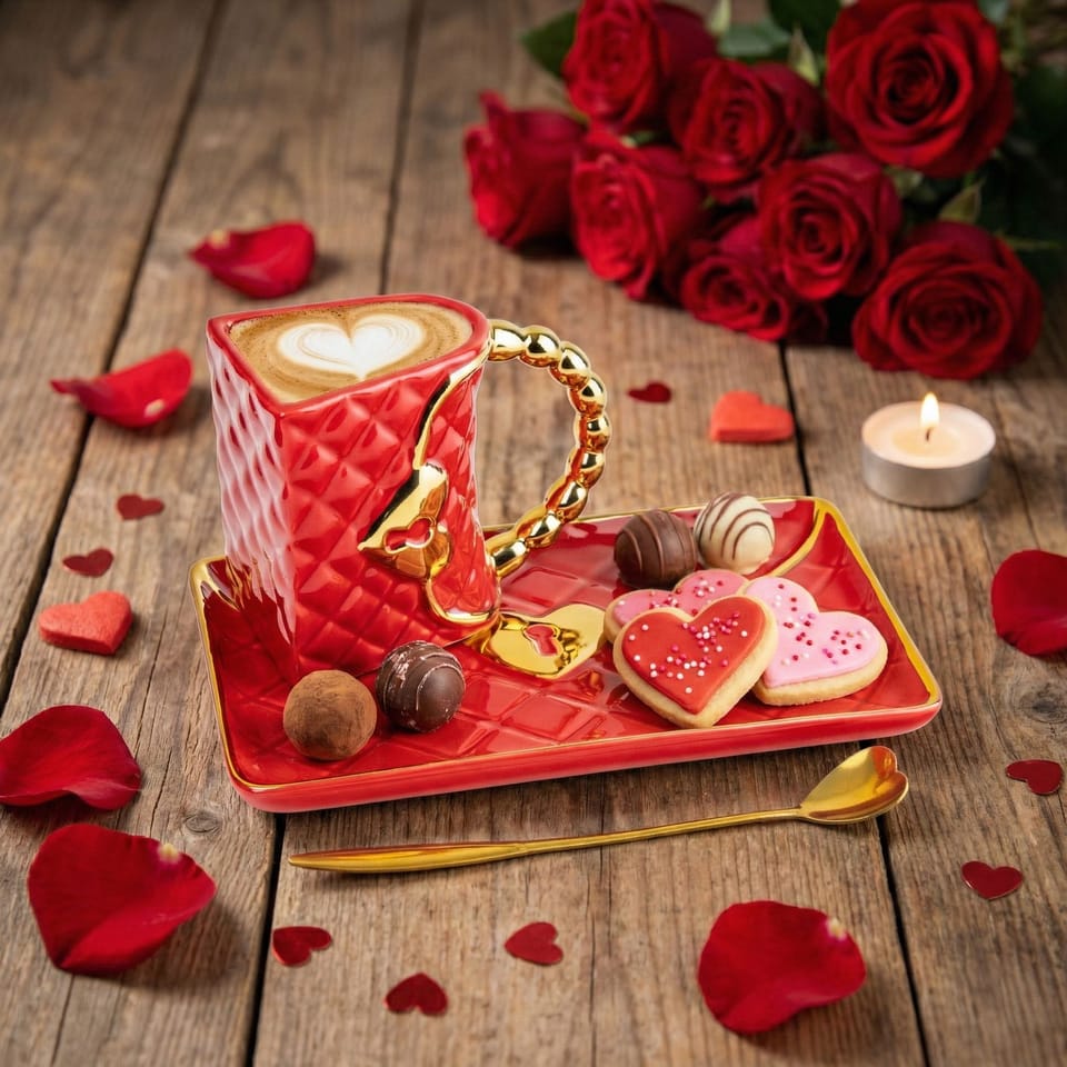 Spójny i elegancki zestaw do kawy Ten elegancki zestaw do kawy został stworzony z myślą o kobietach, które cenią styl i estetykę w codziennych drobiazgach. Składa się z czerwonego kubka torebki, spodka stylizowanego na kopertówkę oraz złotej łyżeczki w kształcie serca, tworząc harmonijną i gustowną całość.Zestaw sprawia, że codzienne chwile przy kawie lub herbacie zyskują wyjątkową oprawę. Kubek w kształcie damskiej torebki Wyrazista czerwień ze złotymi akcentami i ozdobnymi tłoczeniami idealnie oddają wygląd damskiej torebki, a filiżanka nabiera stylu i nowoczesnego charakteru.Dzięki swej niezwykłej formie, czerwona filiżanka z sercem pełni nie tylko funkcję użytkową, ale staje się też elementem dekoracyjnym, który przyciąga wzrok i dodaje elegancji każdemu wnętrzu. Idealny pomysł na prezent dla niej Ta filiżanka ze spodkiem i łyżeczką to oryginalny i niebanalny upominek, który doskonale sprawdzi się jako prezent dla mamy, żony, dziewczyny lub bliskiej osoby.Kubek serce jest idealnym wyborem na Dzień Mamy, Walentynki, urodziny czy rocznicę, ale będzie też miłym gestem bez specjalnej okazji.Kobiecy styl i oryginalna forma sprawiają, że prezent zapada w pamięć i wywołuje szczery uśmiech. Gotowy do wręczenia jako prezent Produkt jest starannie zabezpieczony na czas wysyłki, aby dotarł w nienaruszonym stanie.Dodatkowo dołączona jest przezroczysta folia prezentowa oraz elegancka wstążka, dzięki czemu całość można w prosty sposób przygotować do wręczenia jako prezent.To praktyczne rozwiązanie sprawia, że zestaw od razu prezentuje się estetycznie i wyjątkowo.