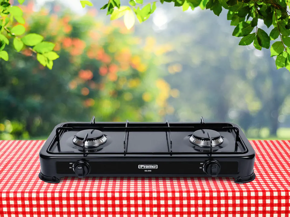 Kuchenka GAZOWA DWUPALNIKOWA PROMIS KG200 czarny- dwa palniki o średnicy 8 cm- bezpieczne użytkowanie- ekonomiczna - duża oszczędność gazu- metalowy ruszt- emaliowana metalowa obudowa- sugerowana wielkość butki to 12 kg propan-butan- płynna regulacja mocy płomienia- stabilna podstawa- łatwe czyszczenie- wygodna w użytkowaniu - zamykana pokrywa- kolor czarny- gwarancja 24 m-ce- kuchenka nie zawiera węża z reduktorem gazu