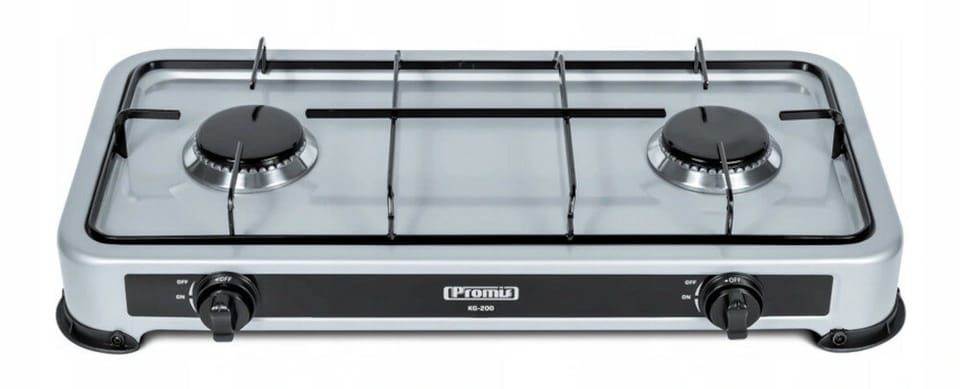 Kuchenka GAZOWA DWUPALNIKOWA PROMIS KG200 SREBRNY- dwa palniki o średnicy 8 cm- bezpieczne użytkowanie- ekonomiczna - duża oszczędność gazu- metalowy ruszt- emaliowana metalowa obudowa- sugerowana wielkość butki to 12 kg propan-butan- płynna regulacja mocy płomienia- stabilna podstawa- łatwe czyszczenie- wygodna w użytkowaniu - zamykana pokrywa- kolor SREBRNY- gwarancja 24 m-ce- kuchenka nie zawiera węża z reduktorem gazu