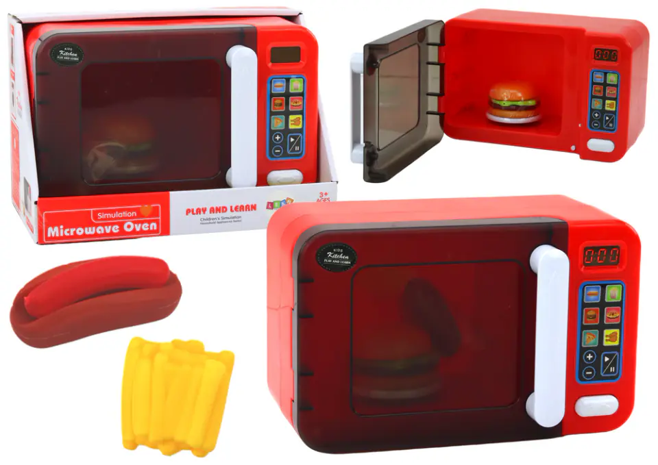 Nasza kuchnia mikrofalowa jest nie tylko zabawką - to interaktywne doświadczenie, które ożywia domową zabawę. Po naciśnięciu przycisku, kuchenka rozpoczyna magiczną symulację gotowania. Podświetlająca się wnętrze sprawia, że wygląda jak prawdziwa mikrofala, a ruchomy talerz dodaje realizmu. Dziecko może nawet otworzyć drzwiczki, aby umieścić swoje danie do podgrzania, a po upływie czasu wyjąć gotowy posiłek. W zestawie znajdują się również zabawkowe jedzenie - hamburger, frytki i hot-dog, które dodają jeszcze więcej realności do zabawy.