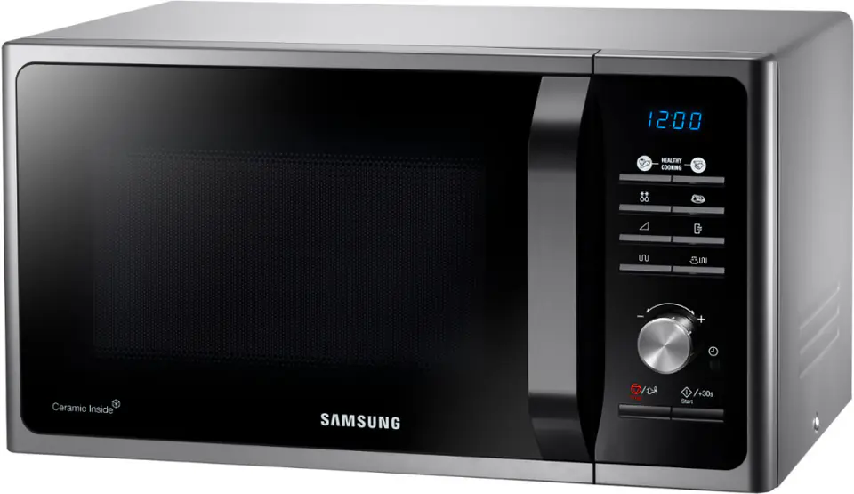 MG23F301TAS Kuchenka mikrofalowaŁatwe gotowanie ze świeżych składnikówZastąp gotowe dania zdrowymi domowymi posiłkami, korzystając z kuchenki mikrofalowej Samsung F300G. 20 zaprogramowanych trybów gotowania pozwoli ci przygotować świeży posiłek w zaledwie kilka minut.Elegancki dodatek w każdej kuchniStylowa kuchenka mikrofalowa F300G z frontem z czarnego szkła i metalową obudową, eleganckim uchwytem, niebieskim wyświetlaczem oraz dopracowanym srebrnym pokrętłem jest ozdobą każdej kuchni.Czystość ceramicznego wnętrzaKuchenka mikrofalowa F300G ma ceramiczne wnętrze o gładkiej powierzchni, które jest łatwe w utrzymaniu czystości oraz odporne na zarysowania i blaknięcie. Antybakteryjne i odporne na zarysowania wnętrze kuchenki jest niezwykle trwałe.Oszczędzaj z trybem ECOTryb ECO w nowej kuchence mikrofalowej Samsung F300G maksymalnie zmniejsza pobór energii w trybie gotowości urządzenia i pomaga obniżyć rachunki za energię elektryczną.Kulinarne mistrzostwoSystem potrójnej dystrybucji mikrofal gwarantuje doskonałe efekty za każdym razem – mikrofale emitowane są z trzech otworów w kuchence, zapewniając większe pokrycie i bardziej precyzyjną dystrybucję ciepła.Wypróbuj ulubione tradycyjne przepisyWybierając z szerokiej gamy przepisów lokalnych zaprogramowanych w kuchence Samsung F300G, możesz delektować się znajomymi smakami za jednym naciśnięciem przycisku.