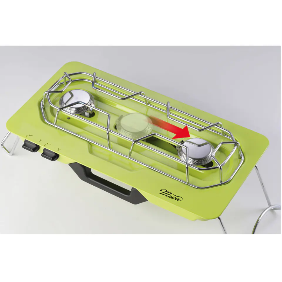 Kod produktu: 1024627Kuchenka kempingowa gazowa MEVA MOVE wyposażona w dwa palniki o mocy 2,3 kW każdy. Wyjątkowa cechą kuchenki MOVE jest jeden ruchomy palnik. Kuchenka posiada regulację szerokości rozstawu palników co umożliwia ogrzewanie większych garnków i patelni dwoma palnikami na raz.Najważniejsze cechy kuchenki:- jeden ruchomy palnik - nogi podstawy kuchenki są składane co ułatwia transport i przechowywanie- kuchenka posiada wygodny uchwyt do przenoszenia- pokrętło zaworów kuchenki posiadają zapalniki piezoelektryczne- kuchenka jest zasilana z kartuszy gazowych z zaworem z gwintem 7/16''W zestawie brak kartuszy gazowych. Można dokupić osobno - kartusz 450g. Id: 1004806 lub kartusz 230g Id: 1004805Dane techniczne