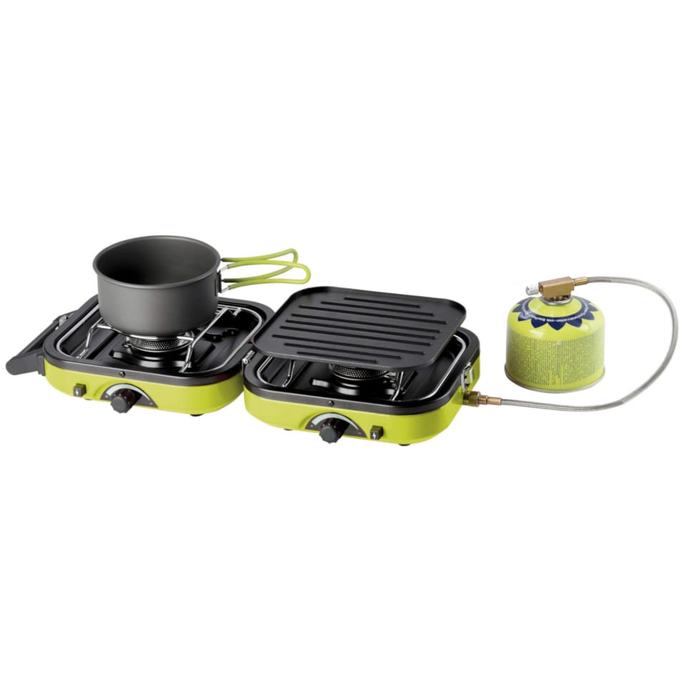 Kod produktu: UKP22003Podwójna kuchenka turystyczna kempingowa DUAL COMPACT renomowanej firmy MEVA doskonale sprawdzi się na kempingu, działce czy w podróży. Palniki gazowe o mocy 2,3kW gwarantują szybkie i oszczędne przygotowanie dużej ilości posiłku. Zwarta, składana konstrukcja ogranicza miejsce do przechowywania i ułatwia transport. Płynna regulacja płomienia oraz piezo-zapalnik sprawiają, że kuchenka DUAL COMPACT jest bardzo łatwa w użyciu.Cechy i funkcje kuchenki turystycznej MEVA DUAL COMPACT :