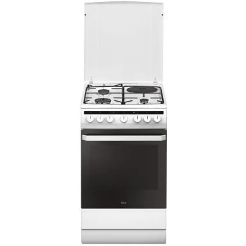Kuchnia wolnostojąca gazowo-elektryczna, o szerokości 50 cm i pojemności piekarnika 65 l, z metalową pokrywą, w klasie energetycznej A. Model ten posiada 3 palniki gazowe z zabezpieczeniem przeciwwypływowym, które w przypadku zalania palników lub ich zgaśnięcia wskutek przeciągu, odcina dopływ gazu oraz płytkę elektryczną o mocy 1500 W. Kuchnia wyposażona została także w podwójny, emaliowany ruszt oraz w OptiGas, jest to system dzięki któremu wielkość płomienia palnika jest dostosowana do wielkości garnków wchodzących w skład typowych zestawów. System optymalizuje zużycie gazu podczas gotowania. Płomień palnika ogrzewa dno garnka, a ciepło nie ucieka na boki. W efekcie zużycie gazu jest mniejsze nawet o 12%. Piekarnik posiada 8 funkcji pieczenia, w tym opcję termoobiegu i grilla elektrycznego.
