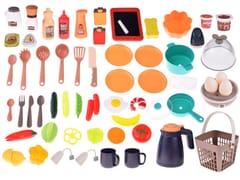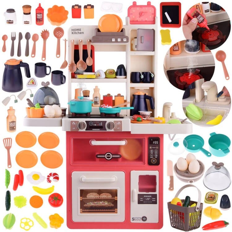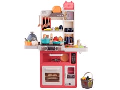 63 elementowy zestaw kuchenny to idealna wolnostojąca kuchnia z wyposażeniem dla małej kucharki, pani domu. Kuchnia w całości wykonana jest z plastiku w atrakcyjnym kremowo-różowym kolorze.