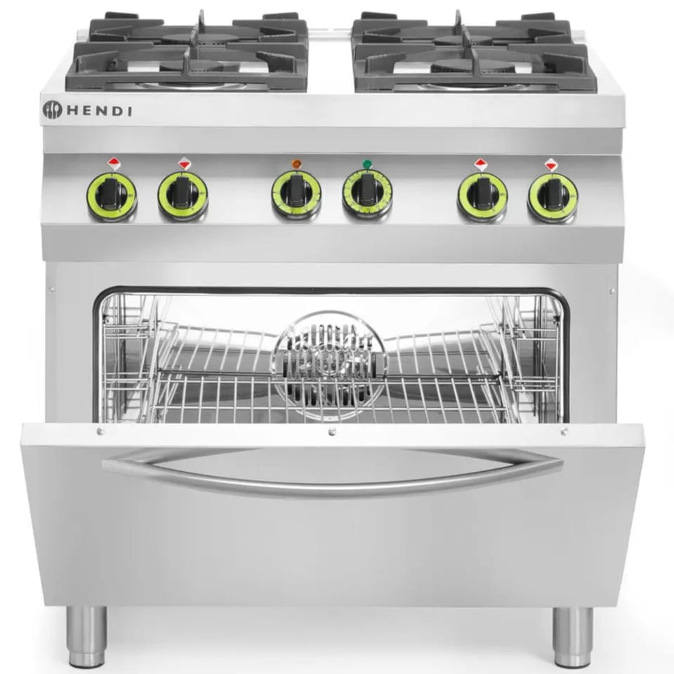 Kod producenta: HENDI 225882 Kuchnia gazowa 4-palnikowa Kitchen Line z konwekcyjnym piekarnikiem elektrycznym GN1/1. Wykonana została z wytrzymałej stali nierdzewnej, jest łatwa w utrzymaniu czystości. Kuchnię przeznaczono do garnków o średnicy od 120 do 300 mm.Cechy produktu: