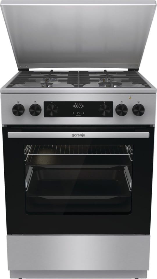 Kuchnia gazowo-elektryczna GKS6C71XFFrozenBakeNajszybszy sposób na upieczenie mrożonych smakołykówTen wydajny program pieczenia jest doskonałym wyborem dla wszystkich mrożonek i gotowych dań.AirFryDla zdrowych przyjemnościTeraz możesz mieć chrupkie i smaczne smażone jedzenie bez dodatkowych kalorii. Ta niezwykle intensywna metoda pieczenia gorącym powietrzem nie wymaga użycia tłuszczu, aby zapewnić idealnie pyszną, chrupiącą złocistą skórkę.W połączeniu ze specjalną perforowaną blachą do pieczenia (w zależności od modelu), która idealnie otacza naczynie dookoła, osiągniesz jeszcze lepsze rezultaty.Idealnie nadaje się do małych kawałków mięsa, ryb, warzyw i gotowych mrożonek, takich jak frytki i nuggetsy z kurczaka.Będziesz cieszyć się cudownie chrupiącą złotą skórką swoich ulubionych smażonych potraw, ale bez kropli oleju!Kształt HomeMadeZa każdym razem równomiernie upieczonyPiekarniki Gorenje są dobrze znane z innowacyjnej, zaokrąglonej wnęki, która od wielu lat jest ich cechą charakterystyczną. Kształt HomeMade był inspirowany tradycyjnymi piecami opalanymi drewnem i zapewnia lepszą cyrkulację powietrza w porównaniu z konkurencją. Teraz kształt HomeMade został całkowicie odświeżony, a przepływ powietrza udoskonalony dzięki nowej konstrukcji grzałki i lepszemu rozmieszczeniu otworów wentylacyjnych. To dlatego temperatura jest stabilna w całym piekarniku. Już nigdy więcej Twoje potrawy nie będą przypalone z jednej strony i niedopieczone z drugiej.Technologia MultiAirDoskonały z każdej stronyTechnologia MultiAir gwarantuje optymalny obieg ciepła wewnątrz piekarnika. Dzięki sprytnie rozmieszczonym otworom wentylacyjnym na tylnej ścianie oraz unikalnemu, zaokrąglonemu kształtowi, powietrze jest równomiernie rozprowadzane w całym piekarniku. Wentylator przepycha gorące powietrze wokół całej objętości piekarnika, dzięki czemu potrawy są idealnie upieczone z każdej strony. Dynamiczny ruch powietrza umożliwia również jednoczesne pieczenie na wielu poziomach bez mieszania się zapachów i smaków.AquaCleanProste, swobodne czyszczenieAquaClean oferuje dużą pomoc w czyszczeniu wnęki piekarnika. Wystarczy wlać pół litra wody do blachy do pieczenia i włączyć AquaClean po każdym pieczeniu. W ciągu zaledwie 30 minut rezultaty są widoczne na całej powierzchni i na blachach do pieczenia. Plamy i tłuszcz są zmiękczone i można je łatwo wytrzeć.BigSpaceGotowy na przepisy w rozmiarze XXL? Innowacyjne rozwiązanie konstrukcyjne pozwala uzyskać większe wnętrze, a szerokość piekarnika jest w pełni wykorzystana. Na każdej blasze jest więcej miejsca, a doskonała technologia sprawia, że potrawy są równomiernie przyrządzane na wszystkich poziomach.BigSurfaceDużo miejsca na każdą patelnię lub garnekPowiększona powierzchnia gotowania i większe odległości między palnikami oferują mnóstwo miejsca dla wszystkich rozmiarów patelni i garnków. Smukła i płaska konstrukcja umożliwia łatwe przesuwanie i używanie bardzo dużych garnków bez zakłóceń, przy zachowaniu doskonałej stabilności podczas wszystkich przygód kulinarnych.Żeliwne ruszty ProGridsMocne, stabilne i trwałe podparcieMasywne i eleganckie żeliwne ruszty ProGrid są niezwykle stabilne i odporne nawet na najwyższe temperatury. Wnoszą do Twojej kuchni najwyższą stabilność, trwałość i przyjazny dla użytkownika design.OdmrażanieProste i skutecznePiekarniki Gorenje wyróżniają się skuteczną funkcją rozmrażania, która równomiernie rozmrozi każdy głęboko zamrożony produkt. Wystarczy ustawić czas, a resztę pozostawić piekarnikowi!FastPreheat (Szybkie nagrzewanie)Dla inspiracji na ostatnią chwilęPiekarniki OptiBake osiągają temperaturę do 200C w zaledwie 4,50 minuty, co pozwala zaoszczędzić 30% czasu potrzebnego na standardowe podgrzewanie i czyni je jednymi z najszybszych piekarników na rynku.Jest to bardzo wygodne w przypadku przepisów, które wymagają wstępnie rozgrzanego piekarnika. Sygnał świetlny i dźwiękowy informuje, kiedy temperatura jest w sam raz.Płyta gazowaRozbudzaj swoją kreatywnośćGotowanie jak szef kuchni może być proste. Wystarczy tylko iskra twórcza, a kuchenka Gorenje z płytą gazową zajmie się resztą. BigSurface, potężne palniki ChefBurners i inne zaawansowane funkcje oferują wsparcie dla Twoich najśmielszych przedsięwzięć kulinarnych. Rozpal swoją inspirację i zaskocz swoich bliskich doskonałymi domowymi potrawami.Delikatne domykanie (GentleClose)Wystarczy delikatny dotykWystarczy tylko delikatny dotyk, aby płynnie i bez hałasu zamknąć drzwi kuchenki.SilverMatteUltra odporna, ultra gładka powłokaJakość i rodzaj emalii są wyjątkowo ważne dla kuchenki i jej działania. SilverMatte to wysoce odporny i mocny materiał, który wytrzymuje ekstremalne temperatury. Wolny od mikroporów, pokrywa powierzchnie wnęk piekarnika i blachy do pieczenia, czyniąc je odpornymi na najwyższe temperatury. Powłoka wnętrza wspomaga odbijanie ciepła i stanowi dodatkową izolację. Dlatego wnętrze piekarnika zawsze pozostaje sterylne i bezpieczne.Szuflada do przechowywaniaWszystko w zasięgu rękiWiększość kuchenek zawiera wygodną szufladę z dużą ilością miejsca do przechowywania blach do pieczenia i innych akcesoriów kuchennych.SuperSizeGotowi na przepisy XXLKuchenki Gorenje oferują powiększoną powierzchnię pieczenia i zastosowanie wyjątkowo dużych blach. Innowacyjne rozwiązania umożliwiają optymalne zużycie energii i równomierne przyrządzanie potraw, niezależnie od ich ilości. Pełna szerokość piekarnika jest efektywnie wykorzystywana, a doskonała technologia sprawia, że potrawy są równomiernie przyrządzane na wszystkich poziomach.