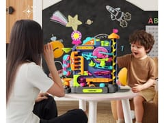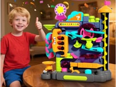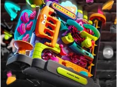 Przekonaj się jak wiele radości da Twojemu maluchowi zabawa tym niezwykłym torem. Kolorowy zjazd z pewnością przykuje uwagę i zachęci do zabawy. Aby pokonać cały tor przeszkód wystarczy zręcznie operować przyciskami i gałkami umieszczonymi na dole planszy.