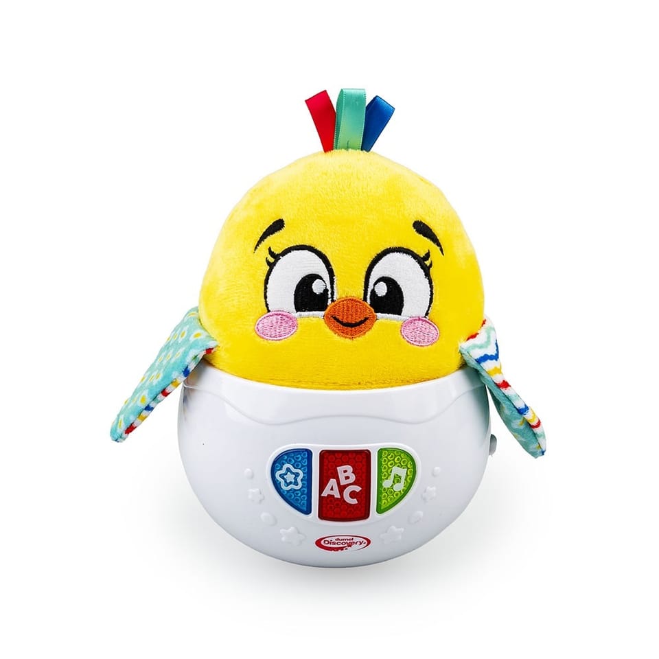 Uroczy kurczaczek w zabawkowej skorupce buja się wesoło, odtwarzając przy tym przeróżne dźwięki. Leoś zna kilka krótkich rymowanek oraz wesołe piosenki i melodie, a gdy maluch pchnie go do tyłu lub w bok, kurczaczek zakołysze się na podstawce i wróci do bazowej pozycji. Zabawka wyposażona jest w trzy przyciski, różniące się kolorem i obrazkiem, a każdy z nich aktywuje inny tryb. Kwiatek uruchamia wierszyki, symbol ABC – piosenki w języku polskim, a nutka – wesołe melodie.