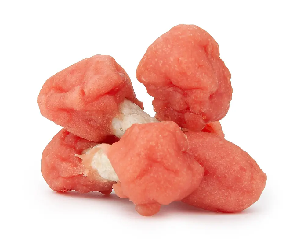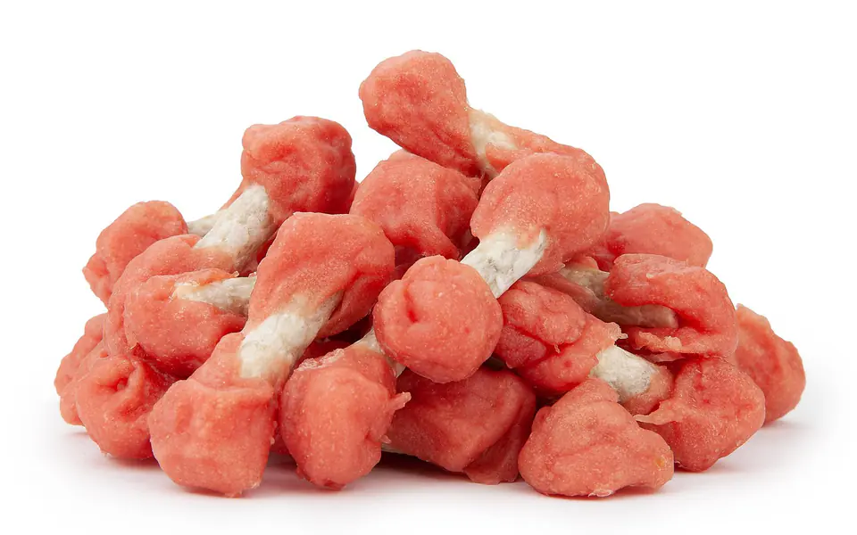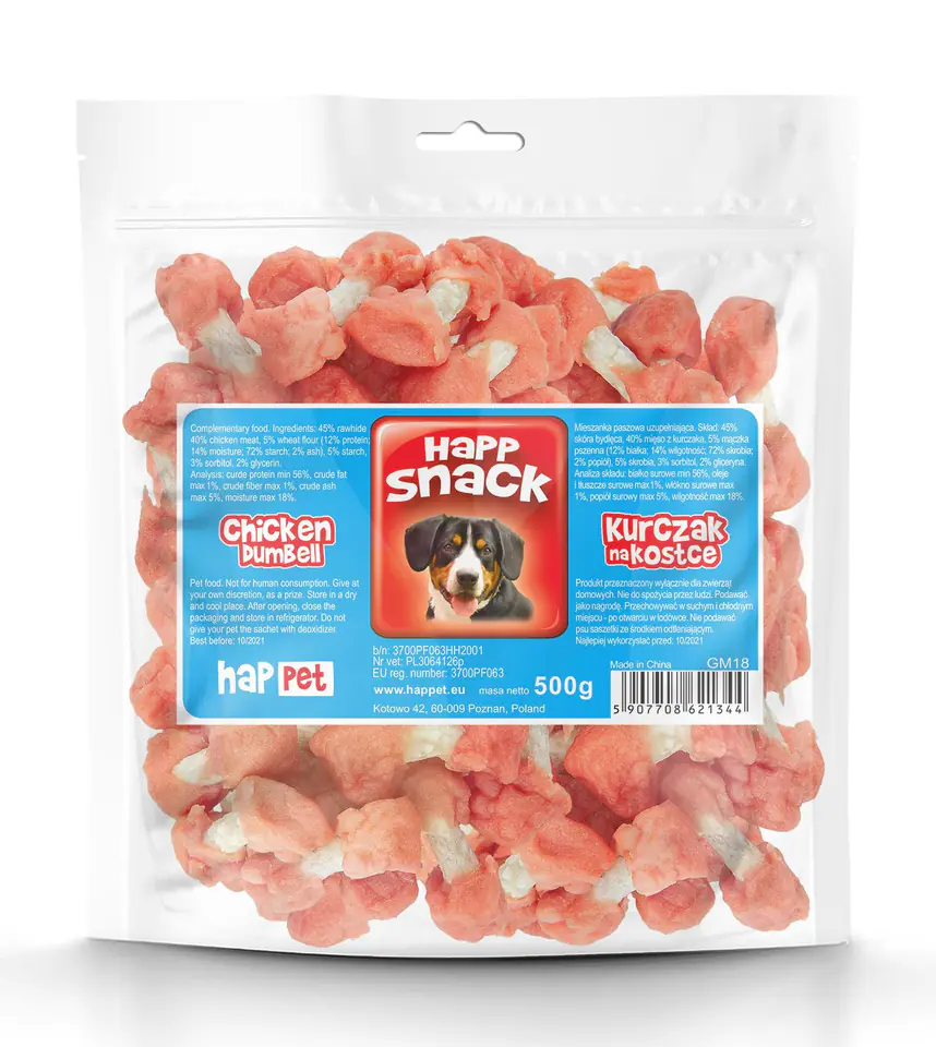 Kurczak na kostce dla psa Kurczak na kostce ze skóry bydlęcej - naturalny smakołyk przeznaczony dla psów wszystkich ras. Dzięki uniwersalnemu kształtowi i wielkości można podawać je zarówno małym, jak i większym czworonogom. Naturalny, mięsny aromat to wynik użycia wysokiej jakości naturalnych składników. Swoją trwałość i elastyczność produkt zawdzięcza specjalnym procesom suszenia. Przy okazji podczas jedzenia suszonych kąsków i skór prasowanych usuwany jest nalot i kamień nazębny, którego nieczyszczenie prowadzi do powstawania próchnicy i nieprzyjemnego zapachu z pyska. Ważne informacje: jest przysmakiem dla psa, dlatego może służyć jako nagroda, zaspokaja potrzebę żucia i gryzienia, zapewnia psu zajęcie na dłuższy czas, w naturalny sposób dba o czyste zęby naszych pupili, zapobiega osadzaniu się kamienia nazębnego, masuje dziąsła, wyróżnia się wysoką zawartością białka i niskim poziomem tłuszczu, jest doskonała dla każdego psa, także dla psów mających problem z utrzymaniem prawidłowej wagi, ściera naloty bakteryjne osadzające się na zwierzęcych zębach, mogące być przyczyną nieświeżego oddechu i chorób przyzębia, żucie takiego gryzaka rozładowuje napięcie i łagodzi wszelkie objawy stresu u psów, należy podawać między posiłkami Pamiętaj! Przysmaki dla psów nie mogą zastąpić pokarmu podstawowego - pomimo, że dostarczają niektórych składników pokarmowych, są tylko przyjemnym urozmaiceniem codziennej diety pupila. Nie podawać szczeniętom poniżej 3 miesiąca życia. Waga netto: 500g Skład: 45% skóra bydlęca, 40% mięso z kurczaka, 5% mączka pszenna (12% białka, 14% wilgotność, 72% skrobia, 2% popiół), 5% skrobia, 3% sorbitol, 2% gliceryna Analiza składu: białko surowe min. 56%, oleje i tłuszcze surowe min. 1%, włókno surowe max. 1%, popiół surowy max. 5%, wilgotność max. 18% Nie zawiera sztucznych zapachów, barwników ani konserwantów. Produkt posiada długi termin przydatności do spożycia.