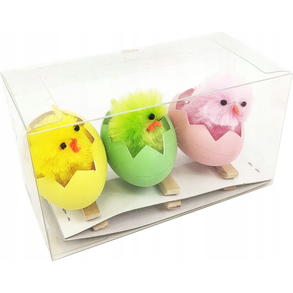 - Opakowanie zawiera 3 sztuki - żółtego, zielonego i różowego kurczaczka