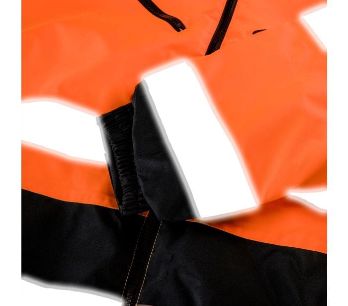 Kurtka robocza ostrzegawcza ocieplana, pomarańczowa, rozmiar M, o intensywnej widzialności, klasa 2 wg. normy EN ISO 20471, tkanina Oxford 300D, ocieplenie poliester 160 gsm, duża ilość wielofunkcyjnych kieszeni zapinanych na suwak, duża kieszeń wewnętrzna, podklejone szwy, wodo i wiatrochronna, chowany w kołnierzu kaptur, wewnętrzna strona kołnierza z polaru, ściągacz w pasie oraz na rękawach, certyfikat CE, EN ISO 13688:2013