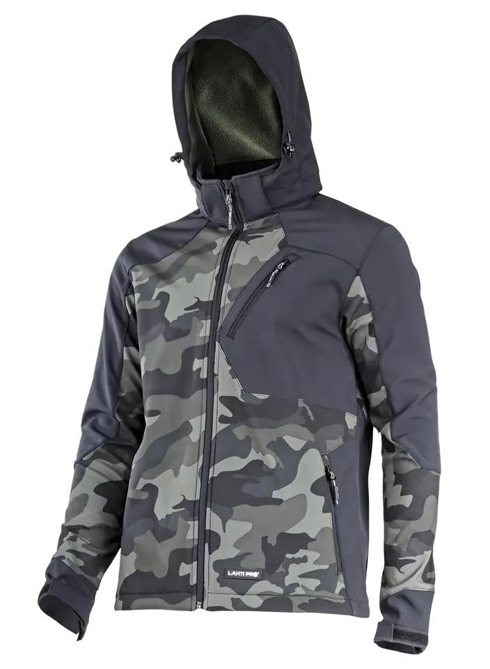 Kurtka softshell z kapt. moro ziel.-czar., "l", ce, lahti