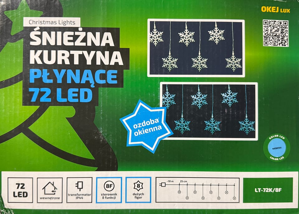 Ozdoba okienna w formie kurtyny wewnętrznej LED. Osiem różnych programów świecenia. Bardzo ciekawe efekty wizualne. Kurtyna nie zasłania widoku z okna, jednocześnie robiąc z niego ekran, na którym dzieją się ciekawe rzeczy.