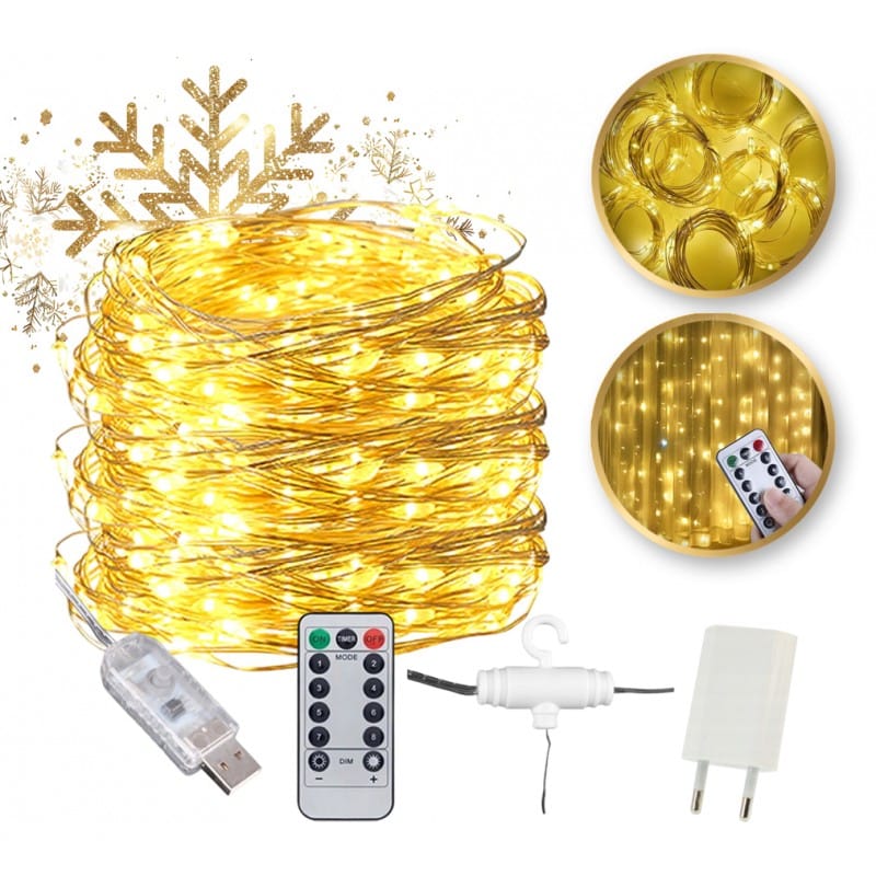 OZDOBA ŚWIĄTECZNA NA BOŻE NARODZENIE Kurtyna wisząca z lampkami LED. Kurtyna do zamontowania na haczykach.300 światełek LED (10 sopli po 30 światełek).Możliwość do zamontowania przez wtyczkę USB lub bezpośrednio do kontaktu.Pilot w zestawie do wyboru jednego z ośmiu trybów świecenia, zmiany intensywności światła lub ustawienia czasu. Wymiary: Szerokość: 300 cmWysokość:300 cm Wymiary opakowania:13cm x 8 cm x 7cm Waga:150g brutto Produkt sprzedawany w pudełku.