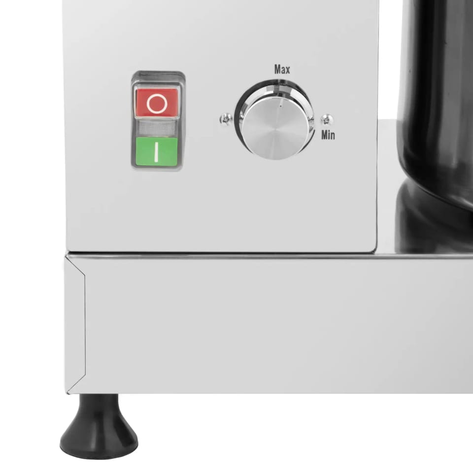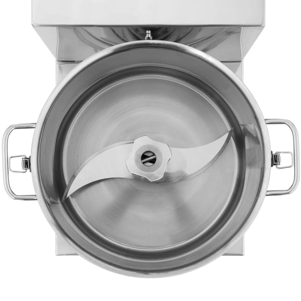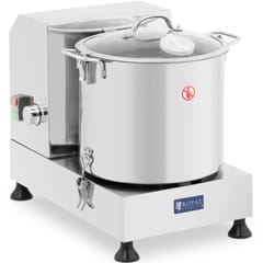 Kod producenta: 10013094Kuter gastronomiczny marki Royal Catering pozwala posiekać lub zmiksować warzywa, mięso czy zioła, aby szybko i skutecznie przygotować zupy, pasztety lub podobne potrawy. Dzięki mocy wyjściowej 1800 W i prędkości obrotowej 1800 - 3500 obr./min przetwarza nawet duże ilości jedzenia. Misa przygotowawcza wykonana została z wytrzymałej stali nierdzewnej i zachwyca wysokiej jakości wykończeniem. Gładkie powierzchnie łatwo wyczyścić w kilku prostych krokach po każdym użyciu. Równie łatwo jest usunąć resztki jedzenia z ostrza zamontowanego wewnątrz pojemnika. Nóż do siekania pozwala niezawodnie rozdrobnić wszystkie produkty spożywcze z dużą prędkością. Jakość wykonania ostrza gwarantuje idealne cięcie bez negatywnego wpływu na obrabiany produkt. Wyjmowane naczynie do przygotowywania ma pojemność 15 l, można w nim przetworzyć do 13.5 l jedzenia. Plastikowa osłona chroni przed zachlapaniem podczas pracy. Aby dodać składniki, należy wrzucić je przez otwór na środku pokrywki. Przezroczysty materiał umożliwia kontrolę konsystencji posiekanych składników. Urządzenie obsługiwane jest za pomocą przycisku. Cztery antypoślizgowe gumowe nóżki zapewniają odpowiednią stabilność przy maksymalnej prędkości. Ze względów bezpieczeństwa ostrza poruszają się tylko wtedy, gdy pojemnik jest mocno przymocowany do urządzenia.Cechy produktu: