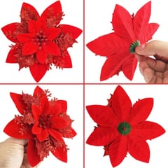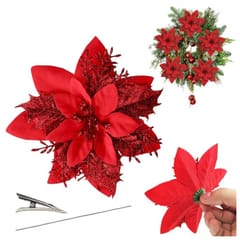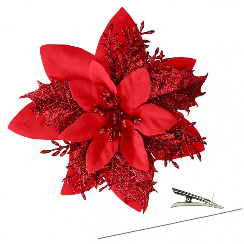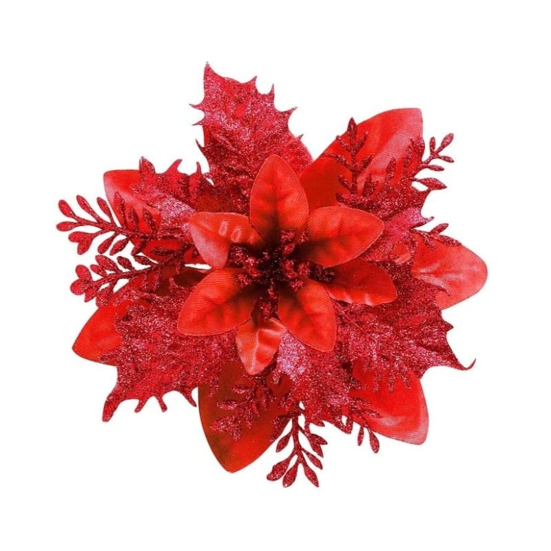 Kwiat na choinkę z klipsem BOŻE NARODZENIE XXL 14 cm brokat czerwony WOZ04CZE