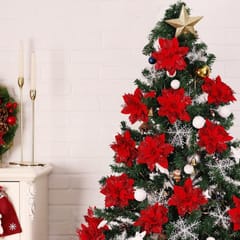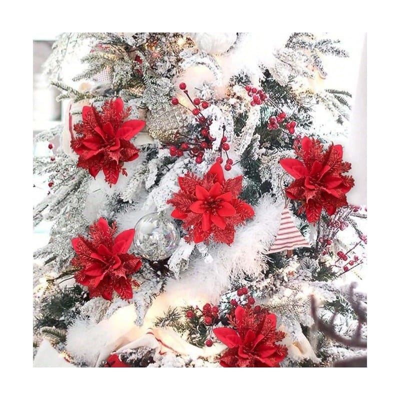 Kwiat na choinkę BOŻE NARODZENIE brokat Dodaj swojemu wnętrzu odrobinę zimowej magii.Kwiat nadaje się jako ozdoba świąteczna do powieszenia na oknie, choince lub jako prezent, a nawet do dekoracji stroików! Wymiary kwiatka:14cm x 13cm Materiał: Tworzywo sztuczneKolor: Czerwony Wymiary opakowania:15,5cm x 13cm x 2cm Waga:12g netto / 14g brutto Kwiaty pięknie ozdobią wnętrze Twojego domu. Poczuj klimat świąt!
