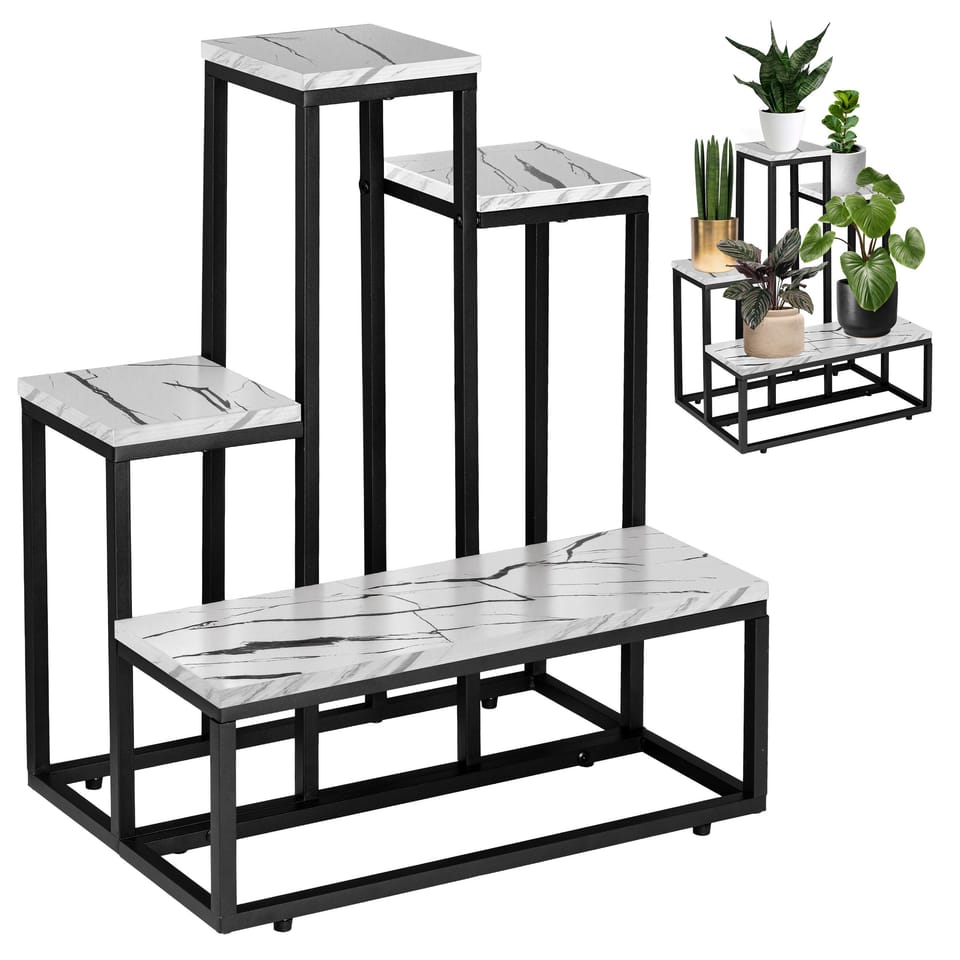 Kwietnik metalowy ANTIRES biały marmur stojak na kwiatyModel: Antires | Kolor: Biały marmurAntires to solidny kwietnik wykonany ze stalowych profili malowanych proszkowo oraz matowych płyt laminowanych imitujących marmur. Cechuje go proste wzornictwo i atrakcyjny design, który wpasuje się w każde nowocześnie urządzone pomieszczenie w stylu nowoczesnym, klasycznym czy glamour. Kwietnik ma wytrzymałą stalową konstrukcję oraz stabilne półki na kwiaty i dekoracje, nawet te o dużej wadze. Posiada ochronne podkładki u podstawy z możliwością wypoziomowania. Wykonany z najwyższej jakości materiałów z zachowaniem dbałości o najdrobniejsze detale. Doskonale nadaje się do eksponowania kwiatów i pokazania ich wyjątkowych walorów.✔️Specyfikacja:Konstrukcja: stal malowana proszkowoPółka: laminowana, matowa, imitująca marmurMaksymalne obciążenie: 30 kg✔️Wymiary:Wysokość całkowita 67 cmSzerokość całkowita 51 cmGłębokość całkowita 34 cmWymiar małych półek: 17,5 x 17,5 cmWymiar dużej półki: 51 x 17,5 cmGrubość płyty 1,5 cmProfil konstrukcji 1,5 cm Informacje dodatkowePrzedstawione kolory należy traktować poglądowo - mogą odbiegać od rzeczywistych ze względu na różne ustawienia monitorów oraz proces obróbki zdjęć. Rzeczywiste wymiary mogą się różnić od podanych wyżej. Tolerancja błędów może wynosić +/- 5%. Marka:LoftInspiredKod produktu:5905523068313Kolor:biały marmur, czarnyWysokość: 67 cmSzerokość:51 cmGłębokość:34 cmDo samodzielnego montażutak
