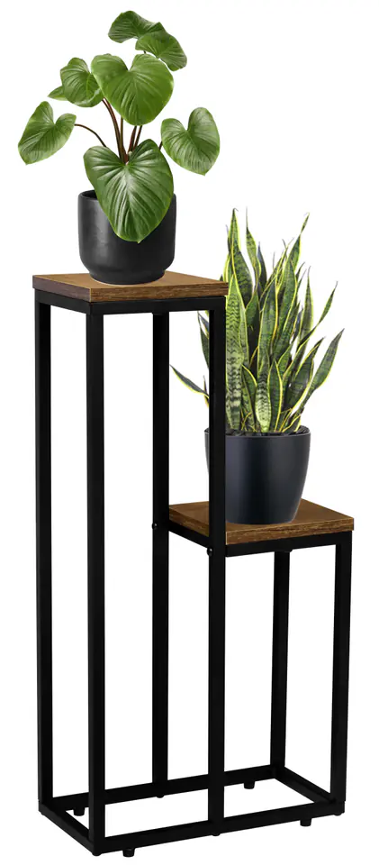 Kwietnik stojący czarny Hazel Rustic postarzany dąbPrzeznaczenie: na kwiaty, rzeźby, dodatki | Kolory: czarny | Zakup od producenta Hazel to solidny kwietnik wykonany ze stalowych profili malowanych proszkowo wykończonych na kolor czarnego matu oraz płyty laminowanej w kolorze postarzanego dębu. Cechuje go proste wzornictwo i atrakcyjny design, który wpasuje się w każde nowocześnie urządzone pomieszczenie w stylu loftowym, klasycznym czy industrialnym. Kwietnik ma wytrzymałą stalową konstrukcję oraz stabilne półki na kwiaty i dekoracje, nawet te o dużej wadze. Posiada ochronne podkładki u podstawy z możliwością regulacji poziomu. Wykonany z najwyższej jakości materiałów z zachowaniem dbałości o najdrobniejsze detale. Doskonale nadaje się do eksponowania kwiatów i pokazania ich wyjątkowych walorów. Hazel to wyjątkowy kwietnik, o solidnej konstrukcji i ciekawym wzornictwie, obok którego nie można przejść obojętnie. Cechy produktuKonstrukcja: stal malowana proszkowo na czarny matPółki: laminowane w kolorze postarzany dąbMaksymalne obciążenie: 10 kgWaga: 3 kgWymiary produktuWysokość całkowita 67 cmSzerokość stelaża 32,5 cmGłębokość stelaża 17 cmPółka 17 cm x 17 cmGrubość płyty 1,5 cmProfil konstrukcji 1,5 cm Informacje dodatkowePrzedstawione kolory należy traktować poglądowo - mogą odbiegać od rzeczywistych ze względu na różne ustawienia monitorów oraz proces obróbki zdjęć. Rzeczywiste wymiary mogą się różnić od podanych wyżej. Tolerancja błędów może wynosić +/- 5%. Marka:LoftInspiredKod EAN produktu:5902340328330Kolor płyty:postarzany dąbWysokość całkowita: 67 cmSzerokość całkowita:32,2 cmŚrednica półki:17 x17 cmDo samodzielnego montażutak