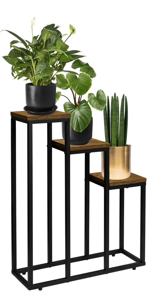 Kwietnik stojący czarny Loren Rustic postarzany dąbPrzeznaczenie: salon, biuro | Kolory: czarny | Zakup od producenta Loren to kwietnik wykonany z solidnej, malowanej proszkowo stali oraz płyty laminowanej w kolorze postarzanego dębu. Ma prosty i atrakcyjny design, który pasuje do różnych wnętrz, w tym stylu loftowego, klasycznego i industrialnego. Dzięki wytrzymałej stalowej konstrukcji oraz stabilnym półkom, kwietnik utrzymuje nawet ciężkie kwiaty i dekoracje. Jest również wyposażony w ochronne podkładki i wykonany z najwyższej jakości materiałów. Pallen to idealny wybór dla osób, które chcą eksponować swoje rośliny w wyjątkowy sposób.Ten produkt ma stalową konstrukcję malowaną proszkowo na czarny mat, co nadaje mu elegancki wygląd. Półka wykonana jest z laminatu w kolorze postarzanego dębu, co dodaje mu ciepła i przytulności. Produkt może wytrzymać maksymalne obciążenie do 15 kg, dzięki czemu nadaje się do przechowywania różnych rzeczy. Waży tylko 4,15 kg, co czyni go łatwym do przenoszenia i montażu. Podkładki ochronne z możliwością regulacji poziomu zapewniają stabilność i chronią podłogę przed zarysowaniem. Cechy produktuKonstrukcja: stal malowana proszkowo na czarny matPółki: laminowane w kolorze postarzany dąbMaksymalne obciążenie: 15 kgWaga: 4,15 kg WymiaryWysokość całkowita 67 cmSzerokość stelaża 51 cmGłębokość stelaża 17 cmPółka 17 cm x 17 cmGrubość płyty 1,5 cmProfil konstrukcji 1,5 cm Informacje dodatkowePrzedstawione kolory należy traktować poglądowo - mogą odbiegać od rzeczywistych ze względu na różne ustawienia monitorów oraz proces obróbki zdjęć. Rzeczywiste wymiary mogą się różnić od podanych wyżej. Tolerancja błędów może wynosić +/- 5%. Marka:LoftInspiredKod EAN produktu:5902340328347Kolor:czarnyWysokość:67 cmSzerokość:51 cmGłębokość:17 cmGrubość płyty:1,5 cm