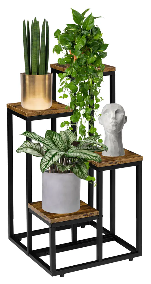 Kwietnik stojący czarny Mogren Rustic postarzany dąbPrzeznaczenie: stojak kwietnik na rośliny, dodatki do wnętrz | Kolory: czarny, postarzany dąb rustic | Zakup od producenta Zalety kwietnika Mogren to nie tylko elegancki design i solidna konstrukcja, ale także maksymalne obciążenie wynoszące 20 kg, co pozwoli Ci wyeksponować swoje ulubione rośliny i dekoracje bez obaw o ich bezpieczeństwo. Dodatkowo, dzięki ochronnym podkładkom u podstawy z możliwością regulacji poziomu, możesz łatwo dostosować kwietnik do każdej powierzchni, zapewniając stabilność i harmonijne wkomponowanie w przestrzeń. Cechy produktuKonstrukcja: stal malowana proszkowoPółki: laminowane w kolorze postarzany dąbMaksymalne obciążenie: 20 kgWaga: 4,75 kgOchronne podkładki u podstawy z możliwością wypoziomowania. Wypoziomowanie odbywa się poprzez dokręcenie bądź odkręcenie stopki regulującej poziom. Wymiary produktuWysokość całkowita 68 cmSzerokość całkowita 34 cmGłębokość całkowita 34 cmPółka 17,5 cm x 17,5 cmGrubość płyty 1,5 cmProfil konstrukcji 1,5 cmWysokość półek: 21 cm, 38 cm, 54 cm, 68 cm ZaletySolidna konstrukcja wykonana z stalowych profili malowanych proszkowo zapewnia trwałość i wytrzymałość.Estetyczny design z płytami laminowanymi w kolorze postarzanego dębu dodaje uroku i elegancji, pasując do różnych stylów aranżacyjnych.Posiada 4 stabilne półki, które mogą utrzymać kwiaty i dekoracje o dużej wadze, zapewniając funkcjonalność i praktyczność.Ochronne podkładki u podstawy chronią podłogę przed zarysowaniami i zapewniają stabilność.Wykonany z najwyższej jakości materiałów z dbałością o detale, co gwarantuje trwałość i estetyczny wygląd.Doskonale nadaje się do eksponowania roślin, podkreślając ich piękno i walory dekoracyjne.Dzięki minimalistycznemu wzornictwu idealnie komponuje się z nowoczesnymi wnętrzami, dodając im stylu i charakteru.Możliwość ustawienia różnorodnych gatunków roślin zapewnia wszechstronność i możliwość dopasowania do własnych preferencji aranżacyjnych Informacje dodatkowePrzedstawione kolory należy traktować poglądowo - mogą odbiegać od rzeczywistych ze względu na różne ustawienia monitorów oraz proces obróbki zdjęć. Rzeczywiste wymiary mogą się różnić od podanych wyżej. Tolerancja błędów może wynosić +/- 5%. Marka:LoftInspiredKod produktu:5902340323847Kolor:postarzany dąb, czarnyWysokość: 68 cmSzerokość:34 cmGłębokość:34 cmDo samodzielnego montażutak