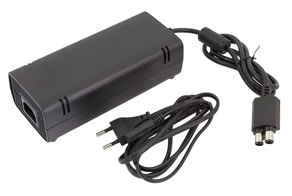- Zasilacz umożliwiający podłączenie konsoli gier do sieci elektrycznej.