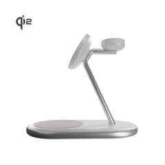 - - Ładowarka bezprzewodowa 3w1 do telefonu smartwatcha słuchawek Qi2 MagSafe - biała