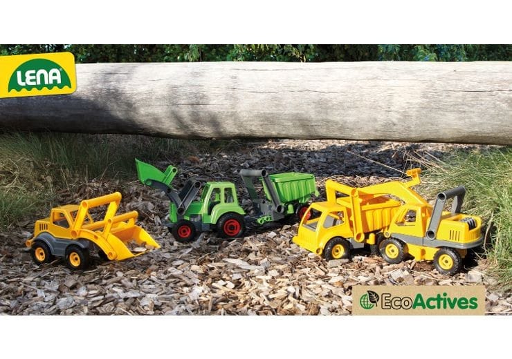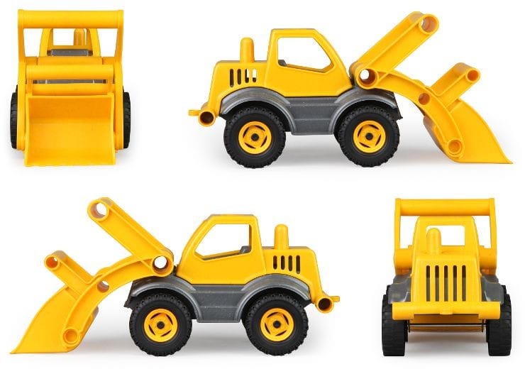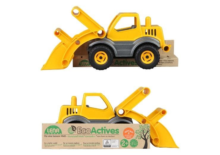 Ładowarka wyprodukowana w ekologiczny sposób z wykorzystaniem materiałów pochodzących z recyklingu oraz domieszek drewna. Posiada ruchome elementy. Kabina na zawiasach.