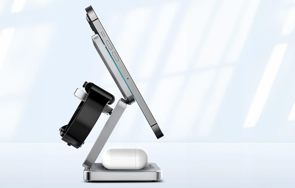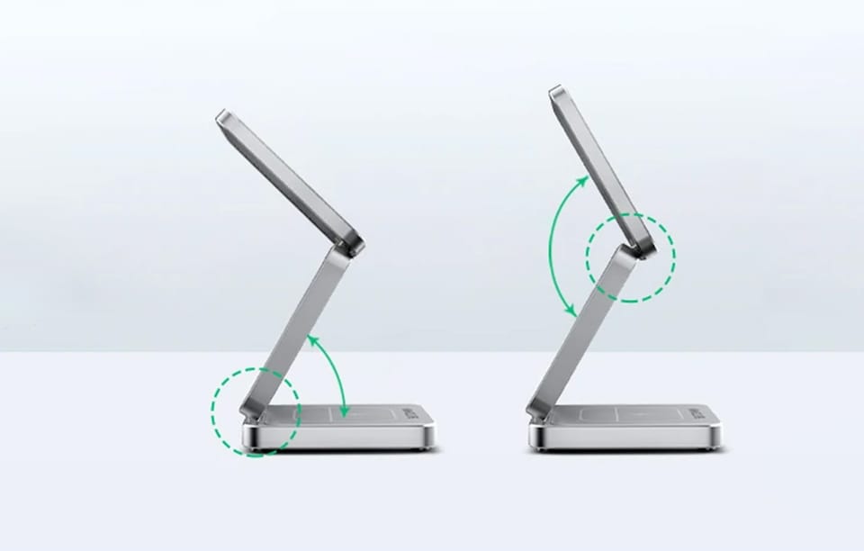 Ładowarka 3 w 1 jest kompaktowa i przenośna, dzięki czemu jej przechowywanie i transport nie będą stanowić problemu. Ponadto pozwala na swobodne regulowanie wysokości i kąta, a zastosowanie wysokiej jakości materiałów przekłada się na trwałość produktu. Jest idealna do użytku domowego, biurowego, a także w podróży lub podczas wyjazdów służbowych.