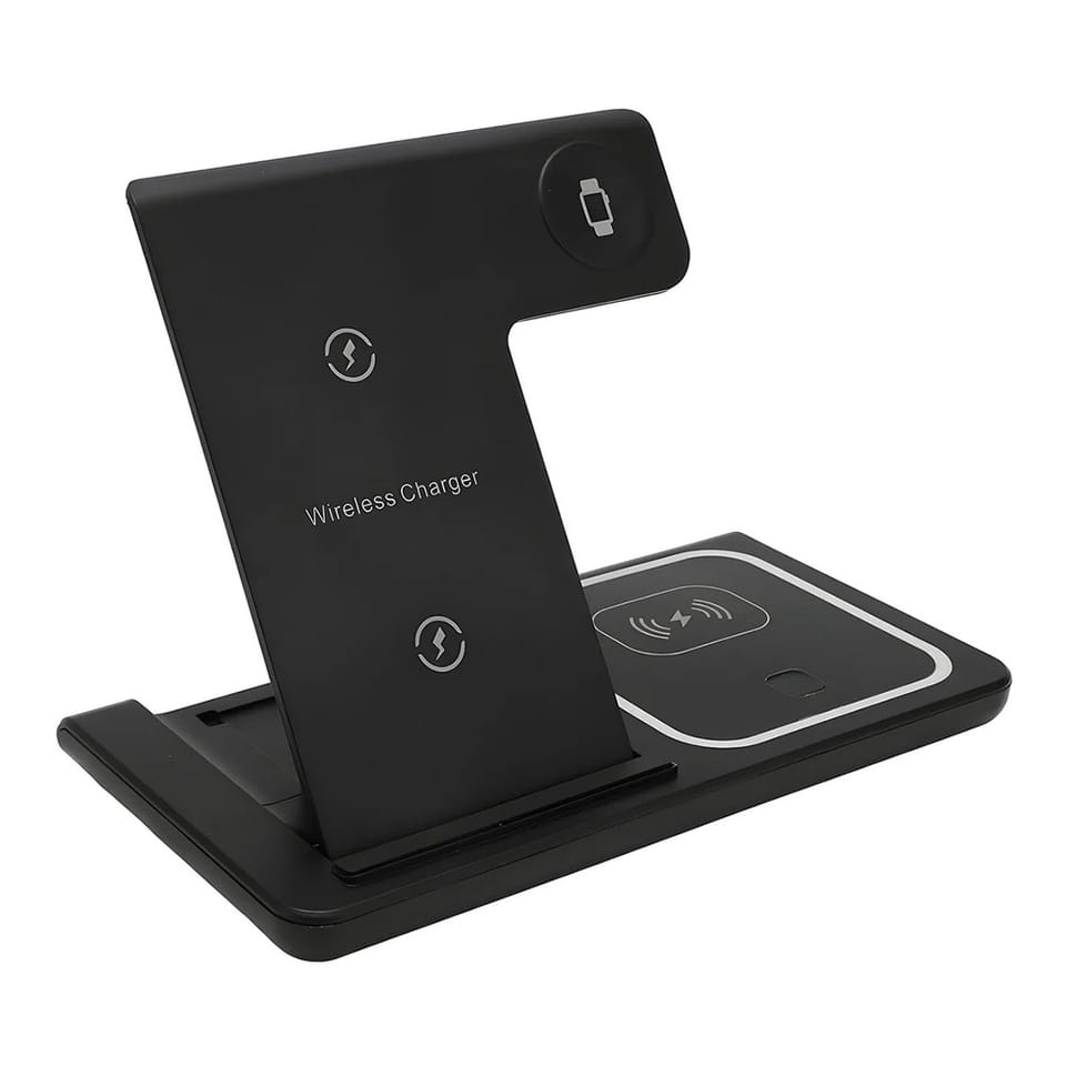 ŁADOWARKA INDUKCYJNA STACJA ŁADUJĄCA BEZPRZEWODOWA 3W1 MULTIFUNKCYJNA CZARNA