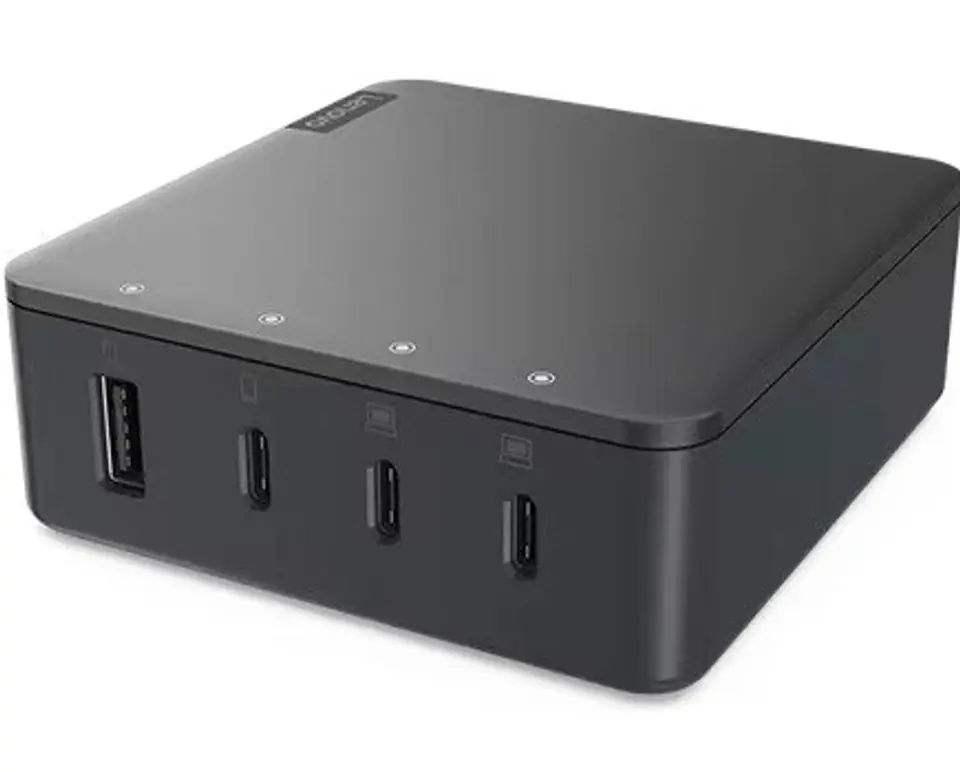 Wieloportowa ładowarka Lenovo Go 130 W pozwala pozbyć się wszystkich ładowarek do urządzeń. Umożliwia ładowanie z pełną prędkością do 4 urządzeń jednocześnie, w tym laptopa i smartfona. Zapewnia inteligentną alokację mocy w oparciu o liczbę urządzeń podłączonych do ładowarki. Ładuj jednocześnie dwa laptopy i dwa smartfony za pomocą wieloportowej ładowarki Lenovo Go 130 W i miej pewność, że Twoja produktywność jest zawsze na najwyższym poziomie. Zoptymalizowana pod kątem bezproblemowej pracy z USB-A i USB-C, ta wieloportowa ładowarka ma 3 porty USB-C i 1 USB-A które mogą ładować praktycznie wszystkie urządzenia USB jednocześnie. Lenovo Go 130 W to wydajność i produktywność w kompaktowym rozmiarze, który zmieści się wygodnie nawet w małym plecaku. To idealne rozwiązanie do ładowania wszystkich urządzeń na rodzinnych wakacjach lub w podróży służbowej.