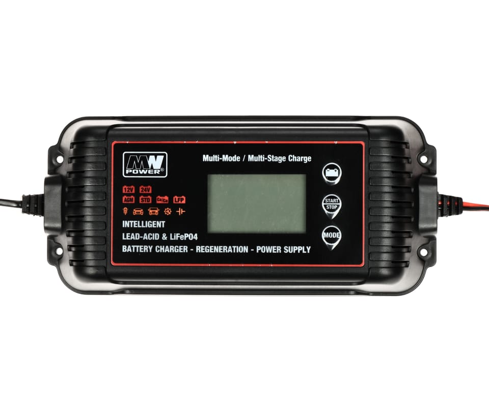 Inteligentna ładowarka akumulatorów MW-SC10E, przeznaczona jest do ładowania akumulatorów kwasowo-ołowiowych, żelowych, MF, AGM oraz LiFePO4 stosowanych w samochodach, quadach, łodziach, kosiarkach, motocyklach, motorowerach, itp.
