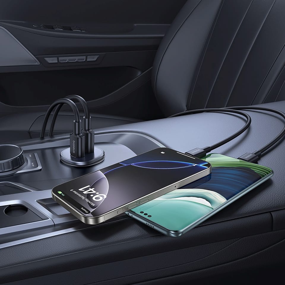 Kod produktu: 1031175Baseus GoTrip to kompaktowa i wydajna ładowarka samochodowa, która dzięki dwóm portom USB-C pozwala na szybkie ładowanie dwóch urządzeń jednocześnie. Obsługuje popularne protokoły szybkiego ładowania, takie jak PD, QC, PPS, FCP i AFC. Inteligentny układ rozpoznaje podłączone urządzenia i dynamicznie dostosowuje parametry, zapewniając bezpieczne i efektywne ładowanie. Poliwęglanowa obudowa i krzemowy chip kontroli temperatury gwarantują skuteczne odprowadzanie ciepła i ochronę urządzeń. Jej minimalistyczny rozmiar idealnie wpasowuje się w gniazdo zapalniczki i nie zaburza estetyki wnętrza auta.Cechy produktu: