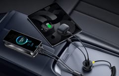 Wbudowany kabel Lightning o długości 1,4 m z funkcją sprężynowego zwijania zapewnia wygodę użytkowania i porządek w samochodzie, a dodatkowy port USB-C umożliwia szybkie ładowanie zarówno urządzeń z systemem iOS, jak i Android. Wbudowane kable oferują błyskawiczne ładowanie – np. iPhone’a 15 do 52% czy Huawei Mate 60 Pro do 65% w zaledwie 30 minut.