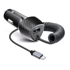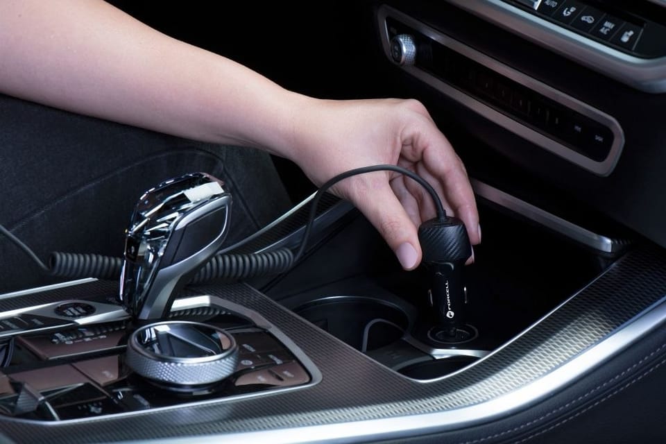 Ładowarka samochodowa z serii FORCELL CARBON z wbudowanym kablem typu C. Wyposażona w uniwersalny port USB. Wspiera protokoły szybkiego ładowania PD 3.0 i QC 3.0. Posiada kilkustopniowy system zabezpieczeń. Ładowarka samochodowa FORCELL CC50-1AC została wyposażona w uniwersalny port USB, dzięki czemu umożliwia wpięcie i ładowanie niemal każdego urządzenia. W tym celu należy użyć odpowiedniego przewodu. Wbudowany kabel ze złączem typu C obsługuje najnowocześniejsze urządzenia, dostarczając mocy na poziomie do 20W. Dodatkowo, korzystając z wbudowanego przewodu, możesz ładować swoje urządzenia z funkcją Power Delivery 3.0. Akcesorium wspiera szybkie ładowanie Quick Charge. Korzystając z wejścia USB, możesz ładować swoje urządzenia z mocą do 18W, przy wykorzystaniu funkcji Quick Charge 3.0. Dzięki temu możesz znacznie skrócić czas ładowania urządzeń. Ładuj niemal wszystkie urządzenia! Używając odpowiednich przewodów, nasza ładowarka naładuje niemal każdy telefon: Apple, Huawei, Samsung, Xiaomi, Vivo, Oppo itd. Akcesorium posiada wbudowany system zabezpieczeń: przed zwarciem, przed nadmiernym prądem, przed przepięciem, przed przegrzaniem. Tym samym chroni podłączone urządzenia i zapewnia bezpieczne użytkowanie.