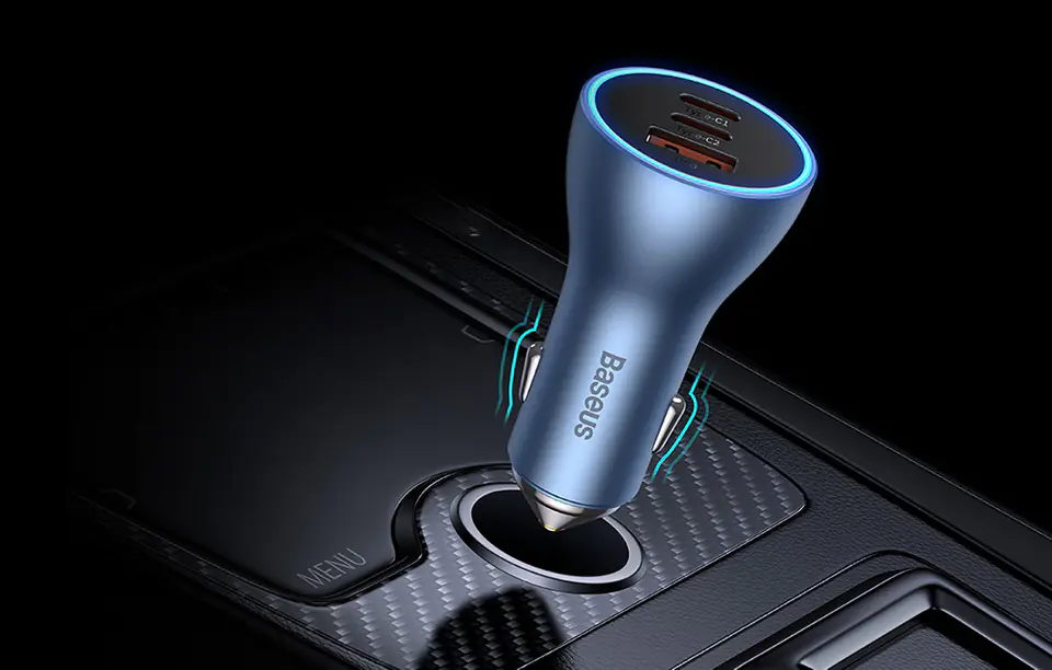 Kod produktu: 1018985Ładowarka samochodowa, marki Baseus wyposażona została w 2 porty USB-C. Wspiera protokoły szybkiego ładowania i obsługuje technologię BPS II fast. Ładowarka jest nie tylko wydajna, ale też bardzo estetyczna. Gustowna metalowa obudowa dobrze prezentuje się we wnętrzu auta, a także jest odporna na przegrzewanie. Urządzenie ma wbudowane również inne zabezpieczenia - nadprądowe czy przed zwarciem. Dzięki perfekcyjnemu kształtowi pozostaje stabilna nawet podczas jazdy po wyboistej drodze.Najważniejsze cechy:
