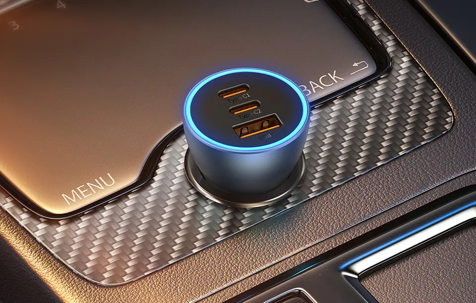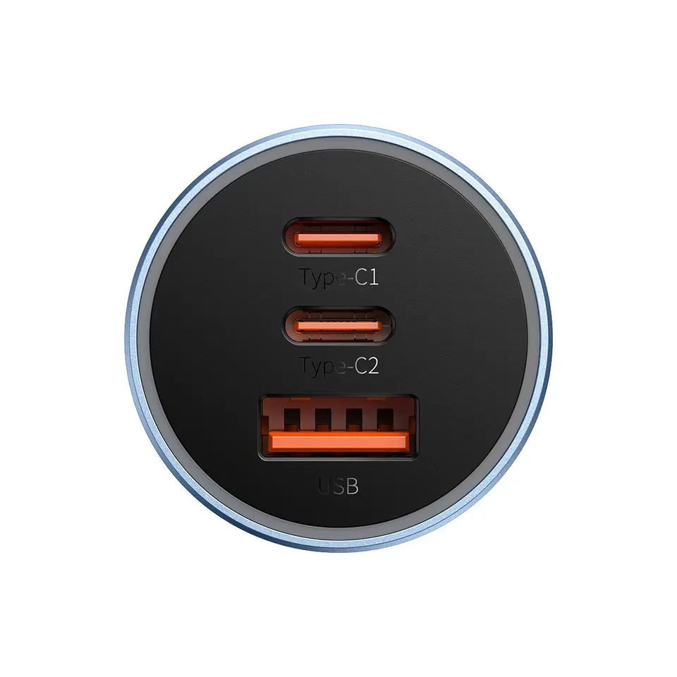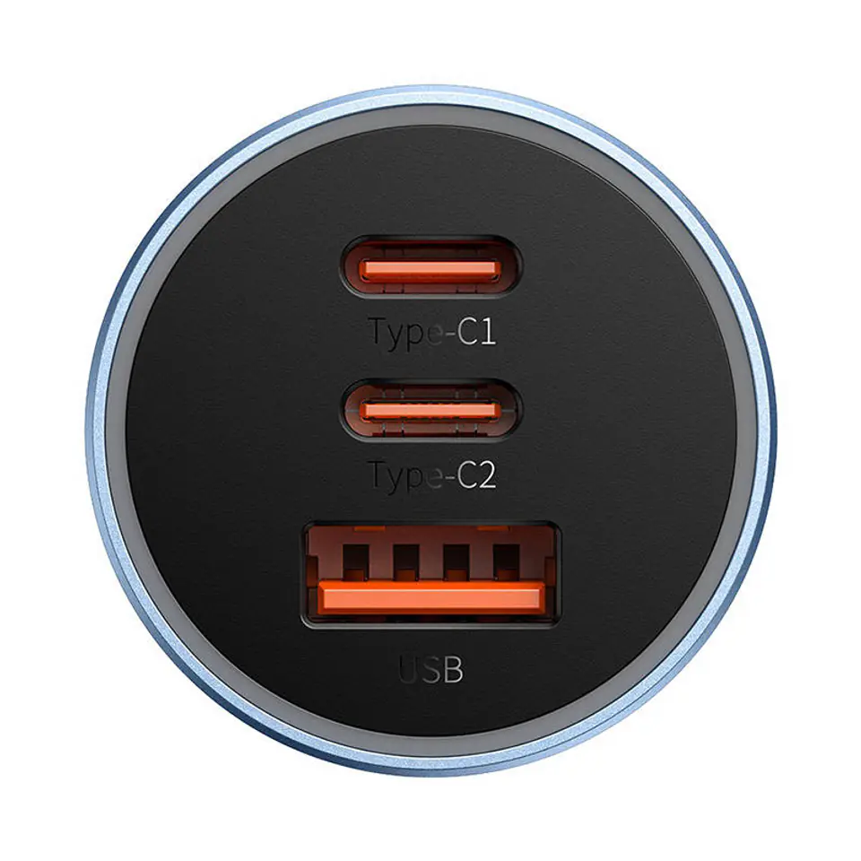 - - Ładowarka samochodowa PRO USB-A + 2x USB-C 65W QC4.0 - niebieski