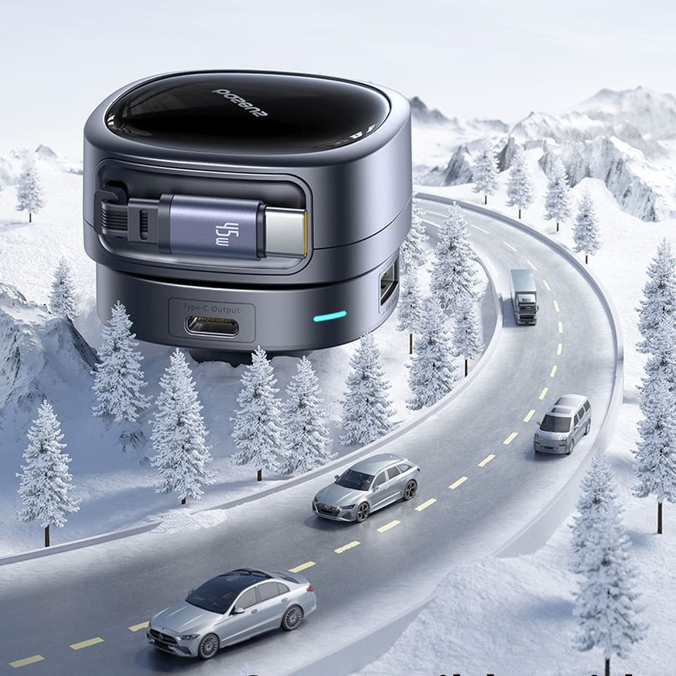 Kod produktu: 1033461Baseus PrimeTrip VR1 to nowoczesna ładowarka samochodowa o mocy do 60 W, która umożliwia szybkie i stabilne ładowanie kilku urządzeń jednocześnie. Wyposażona w port USB-A, port USB-C oraz zwijany kabel USB-C o długości 80 cm, zapewnia wygodę i porządek w aucie. Obrotowa konstrukcja 180deg; ułatwia dopasowanie do wnętrza pojazdu, a szeroki zakres napięcia 12 - 24 V pozwala korzystać z niej w różnych typach samochodów. To praktyczne rozwiązanie do codziennej jazdy i dłuższych tras.Cechy produktu: