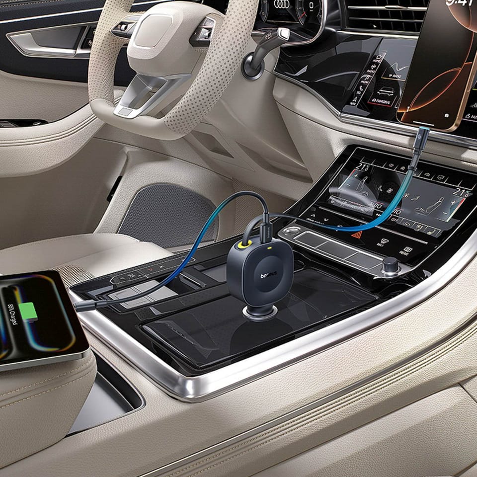 Kod produktu: 1032676Baseus PrimeTrip VR2 to kompaktowa ładowarka samochodowa zaprojektowana z myślą o wygodnym i szybkim ładowaniu w trasie. Wbudowany, zwijany kabel USB-C eliminuje problem plączących się przewodów i ułatwia utrzymanie porządku w samochodzie. Ładowarka umożliwia jednoczesne zasilanie dwóch urządzeń z łączną mocą do 30 W, zapewniając stabilną i bezpieczną pracę podczas codziennej jazdy. Obrotowa konstrukcja oraz solidne wykonanie sprawiają, że urządzenie pozostaje wygodne w użyciu nawet na nierównych drogach.Cechy produktu: