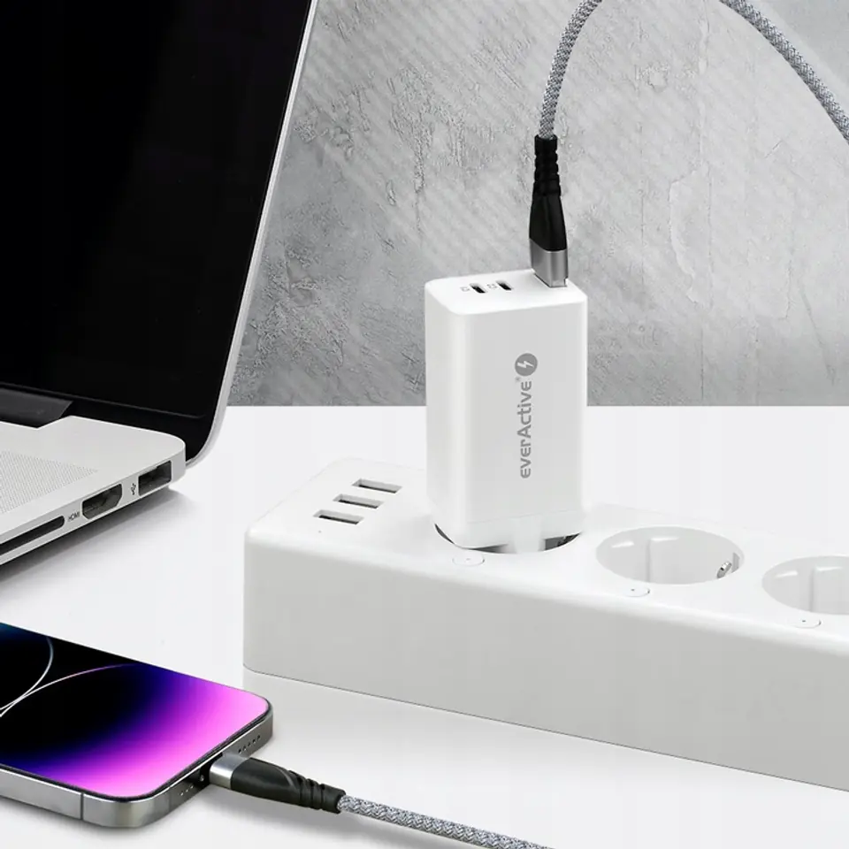 Ładowarka sieciowa 230V EVERACTIVE SC-650Q 1xUSB 3A + 2xUSB-C 3,25A 65W biała