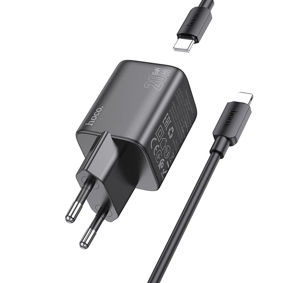 Ładowarka sieciowa Hoco N40 z portem USB-C i obsługą szybkiego ładowania o mocy 20 W. W zestawie z kablem USB-C – Lightning o długości 1 metra.